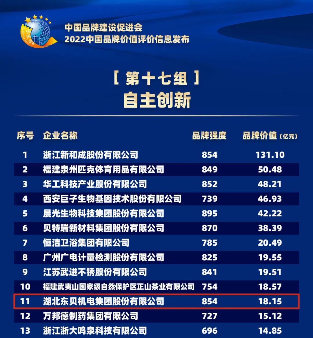 東貝集團榮登“2022中國品牌價值評價信息”榜單